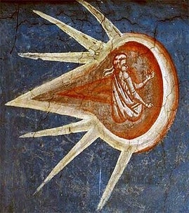 -Arriba en la fotografía: La Crucifixión de Cristo (1330): en esta clásica obra de la iconografía cristiana se observan dos curiosos objetos voladores, piloteados por sendos personajes vestidos con lo que parece ser trajes espaciales.